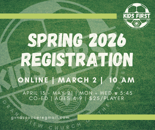 A ministry of Grandview Church of the Nazarene, Kids First Soccer provides recreational youth soccer for children ages 4-9.